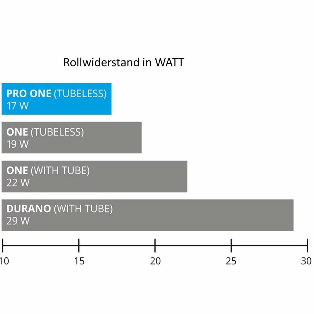 Der neue PRO ONE ist schneller. Rollwiderstandsmessungen (in WATT) zeigen, das er