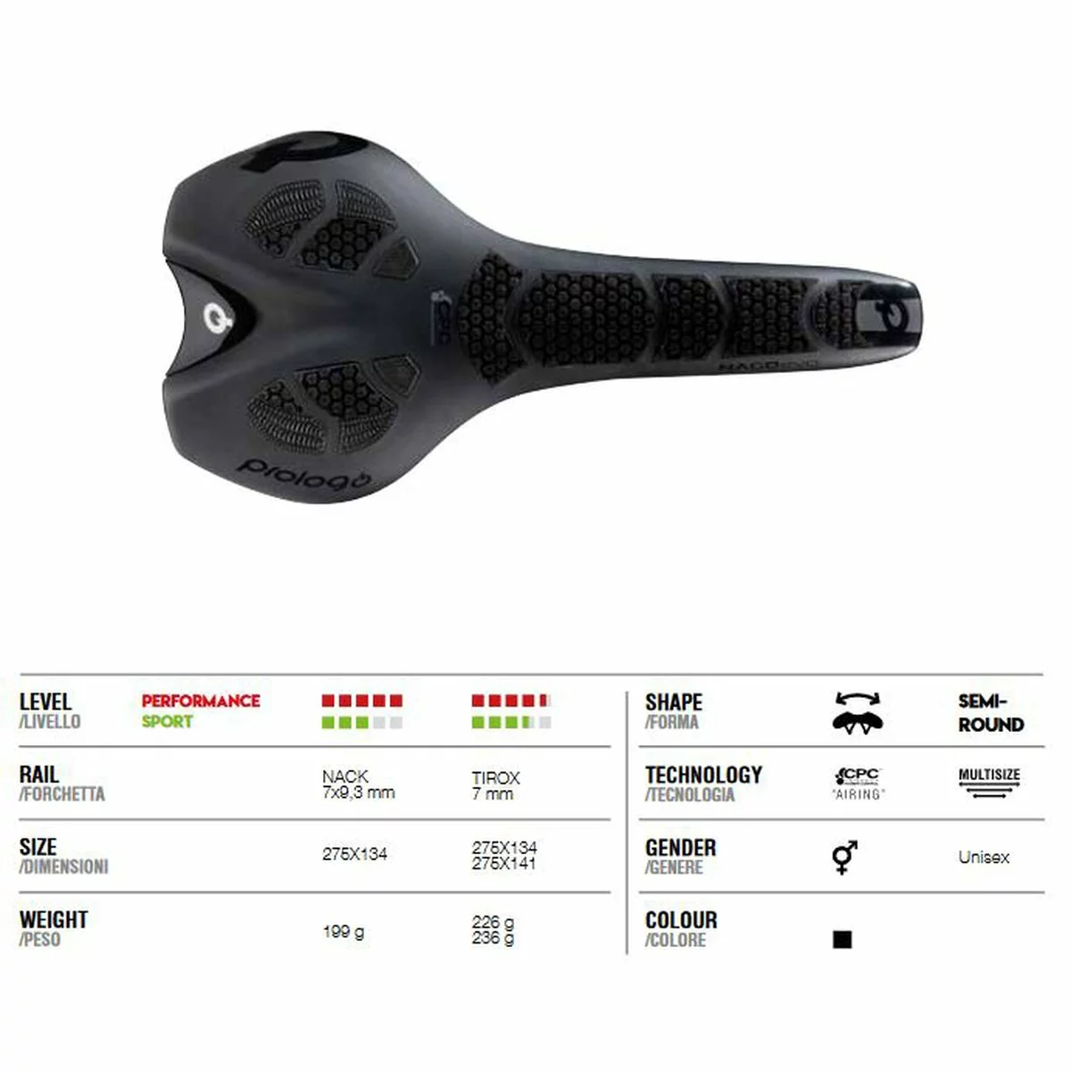 Der Sattel PROLOGO Nago Evo ist ein Unis0ex-Halbrundsattel, ideal für mittlere bis lange